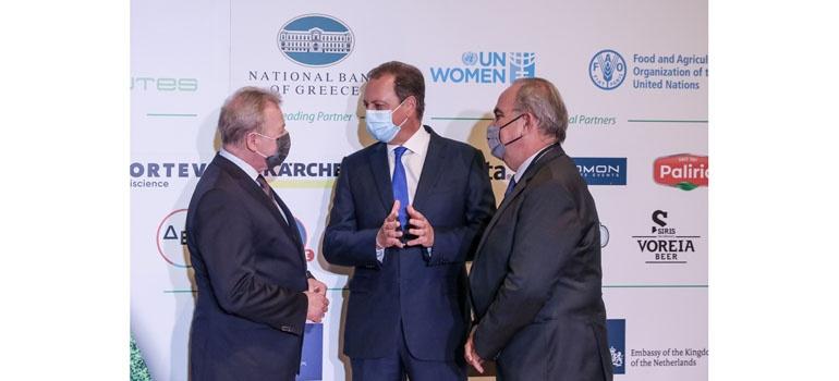 Ιδιαίτερη αναφορά έκανε και στους βασικούς άξονες της Εθνικής Στρατηγικής της χώρας μας στον αγροδιατροφικό τομέα. Όπως σημείωσε:
