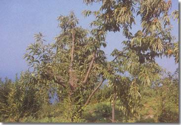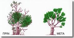 ότι υπάρχουν δυνατότητες τουλάχιστον να διπλασιαστεί. Έχει παρατηρηθεί ότι σε πολλές περιοχές της χώρας οι καστανιές είναι υπέργηρες, ακαλλιέργητες, προσβλημένες από μελιό (Loranthus europeus) και πολλά νεκρά κλαδιά. Γενικά τα δένδρα αυτά δεν αποδοτικά (Εικ. 1). Παραγωγοί εφαρμόζουν κλάδεμα ανάπλασης της κόμης των δένδρων αλλά φαίνεται πως δεν έχουν την κατάλληλη πληροφόρηση (Εικ. 2). Η καστανιά, ως καρποφόρο δένδρο, είναι αποδοτική μέχρι το 50ό έως 60ό έτος της ηλικίας της. Μετά την ηλικία αυτή θα πρέπει ή να αναπλαστεί η κόμη ή να υλοτομηθεί το δένδρο και ένα από τα νέα πρεμνοβλαστήματα να εμβολιαστεί με εκλεκτά εμβόλια. Σε ορισμένες περιοχές της χώρας παραγωγοί εμβολιάζουν τους βραχίονες έντονα κλαδεμένων δένδρων, χωρίς όμως πάντα να επιτυγχάνεται το επιθυμητό αποτέλεσμα. Ανάπλαση της κόμης τους είναι δυνατό να χρειαστούν και δένδρα που έχουν προσβληθεί από την ασθένεια του έλκους. Εάν απομακρυνθούν μόνο τα νεκρά από την ασθένεια κλαδιά, τότε θα προκύψει ασύμμετρη κόμη, ενώ η τεχνική που περιγράφεται εδώ δημιουργεί κανονικό και αποδοτικό φύλλωμα. Έτσι, ο παραγωγός μπορεί να διατηρήσει την απόδοση των δένδρων του και να έχει σταθερή παραγωγή. Η μέθοδος έχει διάρκεια εφαρμογής 5 χρόνων για την ανάπλαση της κόμης των δένδρων και την αποκατάσταση της αποδοτικότητάς τους. |